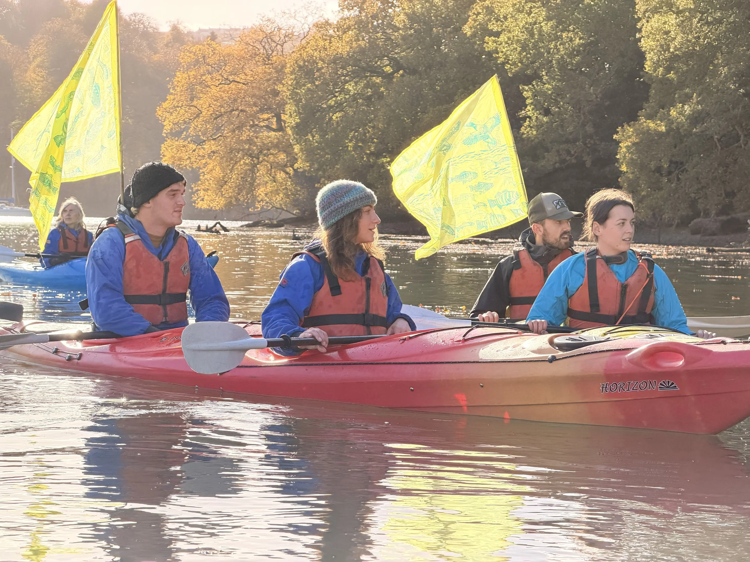 The campaign officially launched on Sunday 2nd November with a kayak flotilla setting off from the Higher Ferry Slipway in Dartmouth. Supporters gathered from 11:30am to cheer, chat, and wave the paddlers upriver as they set out.